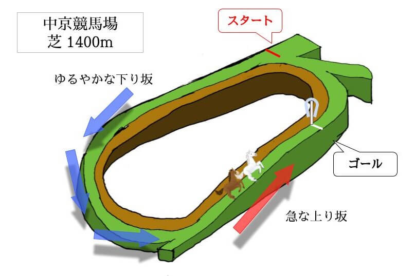 直線が長く坂も厳しいため差しも届くが、序盤は落ち着きやすく総合力が問われるコース